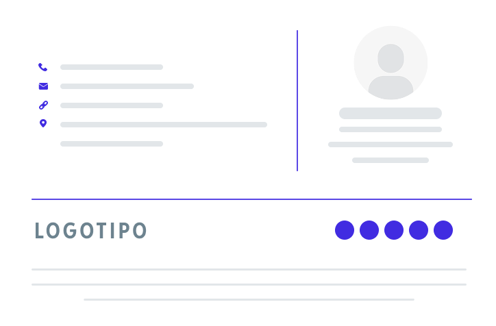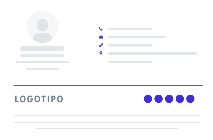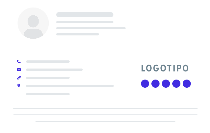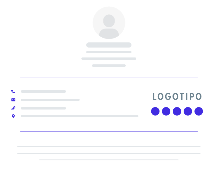• Puedes añadir nombre completo, cargo, empresa, teléfono, dirección de email, página web, enlaces a redes sociales y un logotipo o foto personal. Todo con un diseño limpio y adaptable a diferentes dispositivos.